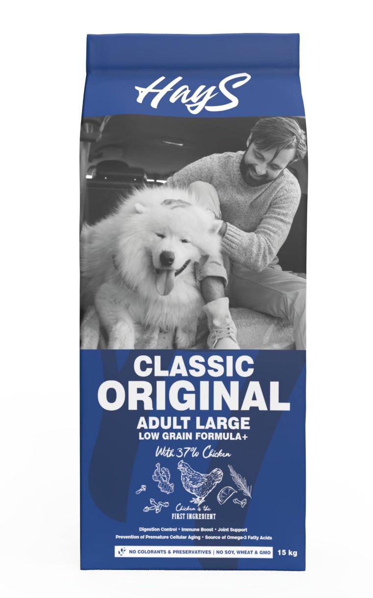 COMPOSITION : protéine de poulet (35 %), maïs, pulpe de pomme séchée, avoine, graisse de volaille, levures, foie de poulet hydrolysé (2 %), huile de saumon (1 %), farine de pois, glucosamine (0,02 %), extraits végétaux naturels (0,015 % – clou de girofle, romarin, curcuma et citron), sulfate de chondroïtine (0,014 %), mannane-oligosaccharides (0,012 %), fructo-oligosaccharides (0,008 %), yucca schidigera (0,008 %). Additifs