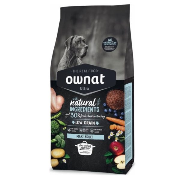 Composition : Viande fraîche de poulet et de dinde* (min. 30% avant la cuisson), viande déshydratée (20%), racines de manioc*, petits pois entiers*, riz complet*, graisse de poulet (préservée avec des antioxydants naturels), fèves entières*, orge complet*, pomme de terre déshydratée*, protéine de poulet hydrolysées (2,5%), levure de bière*, pulpe de betterave, gousse de caroube*, huile de saumon (préservée avec des antioxydants naturels), graines de lin*, pomme fraîche* (1%), carotte fraîche* (0,5%), brocolis frais* (0,5%), sel gemme*, luzerne déshydratée*, racines de chicorée (FOS)*, extrait de levures (MOS), algues marines déshydratées*, glucosamine, yucca schidigera, chondroïtine sulfate, airelles*, thé vert*, échinacée*, fleur de camomille*. *Ingrédients naturels.